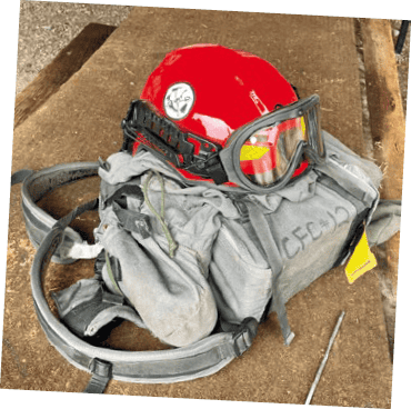 Die praktische Ausbildung im Wildfire Camp bedeutete nicht nur große Strecken in der Ebene zu absolvieren, sondern auch mal schnell 200 Höhenmeter zu machen und dort die Handgeräte einzusetzen. Körperlich wird man schon an seine Grenzen gebracht. Aber es ging beim Training ja auch darum, die physischen Anforderungen kennenzulernen. Sicherheit, wie beispielsweise beim richtigen Tragen der Handgeräte, war während des Trainings oberste Priorität. Dazu gehörten auch die Nutzung der sogenannten Fire-Shelter. Diese bieten Schutz vor Hitze und Flammen, sollte man tatsächlich einmal in eine ausweglose Situation geraten. Schon unter Übungsbedingungen ist es ein komisches Gefühl, wenn man unter diese schützende Hülle muss.